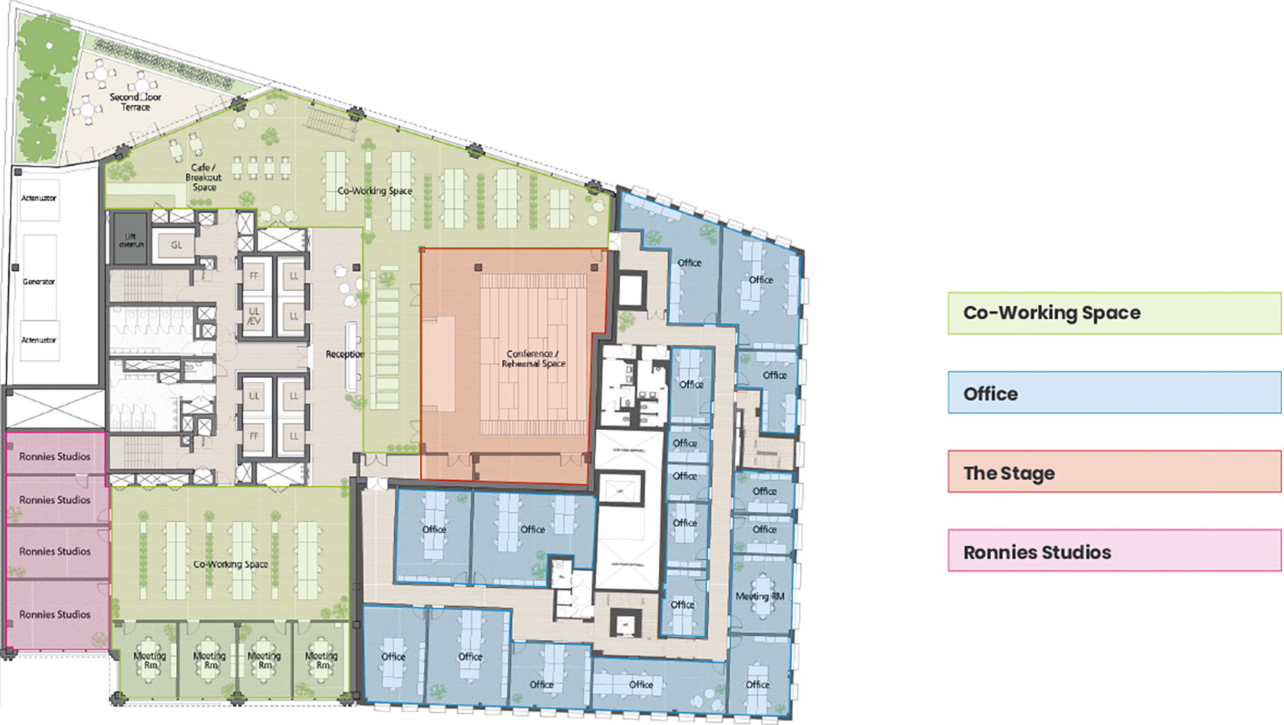 - Ronnies Academy- a academy programme managed by Ronnie Scotts Charitable Foundation will be based within the affordable workspace and will host regular academy classes at the Stage and Ronnies Studios to provide musical experiences and classes to young aspiring artists and musicians and Lambeth residents in partnership with local charities and schools;